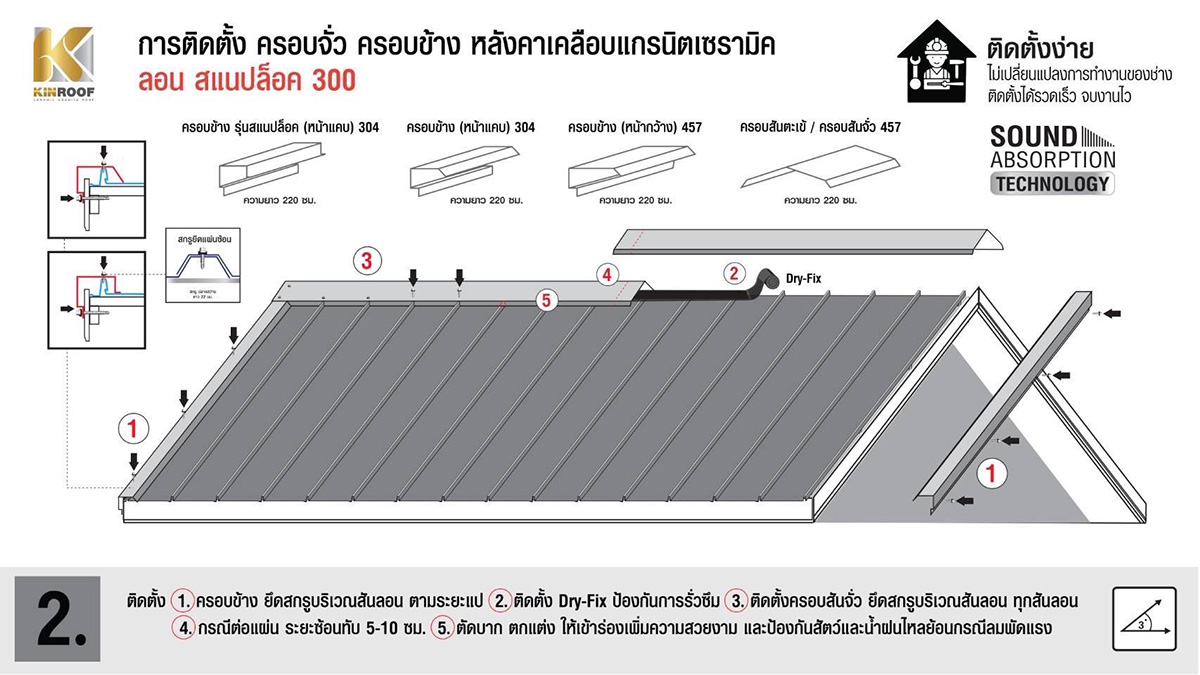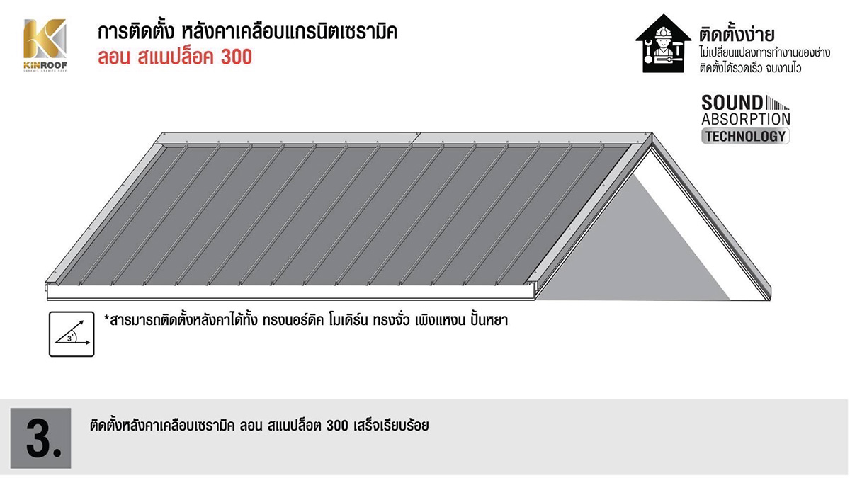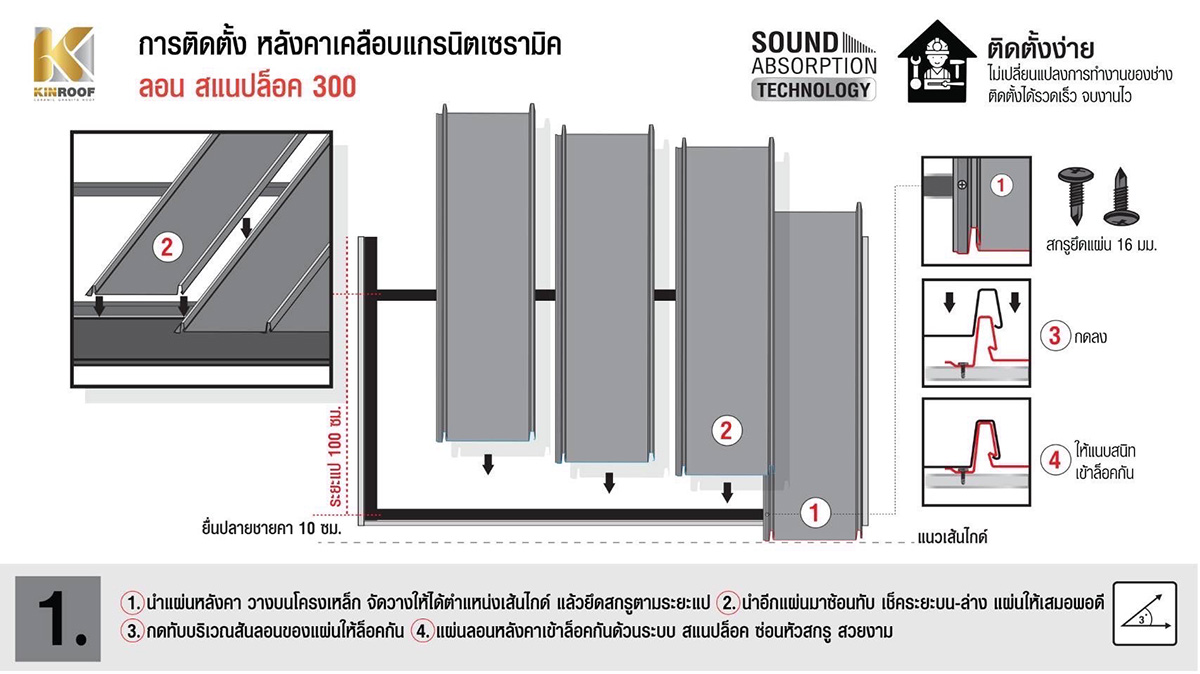 สัมผัสประสบการณ์ใหม่ของหลังคาคุณภาพกับ Kinroof หลังคาเหล็กเคลือบเซรามิก รุ่น Snap Lock ที่ถูกออกแบบมาเพื่อตอบโจทย์ทั้งความสวยงาม ความทนทาน และความสะดวกในการติดตั้ง ด้วยนวัตกรรมระบบล็อกแบบซ่อนหัวสกรู (Concealed Fastener) ที่ทำให้การติดตั้งเป็นไปอย่างรวดเร็ว ประหยัดเวลา และลดความเสี่ยงจากการรั่วซึมบริเวณหัวสกรูได้อย่างยอดเยี่ยม มอบความเรียบเนียน สวยงามไร้รอยต่อให้กับหลังคาบ้านของคุณ พร้อมคุณสมบัติเด่นของเหล็กเคลือบเซรามิกที่แข็งแกร่ง ทนทานต่อทุกสภาพอากาศ ไม่เป็นสนิมง่าย สีไม่ซีดจาง และมีอายุการใช้งานที่ยาวนาน ทำให้ Kinroof รุ่น Snap Lock คือทางเลือกที่ชาญฉลาดสำหรับบ้านที่คุณรัก ทั้งยังเพิ่มมูลค่าและความงดงามให้กับสถาปัตยกรรมทุกสไตล์ได้อย่างลงตัว